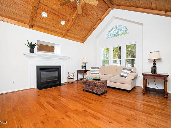 Discover the perfect blend of convenience and charm in this beautiful 4-bedroom (or 3-bed + bonus room), 2-bath home with an office/flex space, ideally situated close to everything Apex has to offer and just a short commute to RTP. This home is the epitome of ''location, location, location''! Step inside and immediately feel at home with gleaming hardwood floors that reflect abundant natural light, highlighting custom wood vaulted ceilings and fresh interior paint. The inviting living room, complete with a cozy fireplace, is perfect for both lively gatherings and peaceful moments of relaxation. The additional rooms are ready for your personal touch, offering endless possibilities for customization. With recent updates including a new roof in 2023, new windows in 2022, and a new HVAC system installed in 2017, this home is move-in ready. Don't miss the opportunity to make this delightful house your next home!