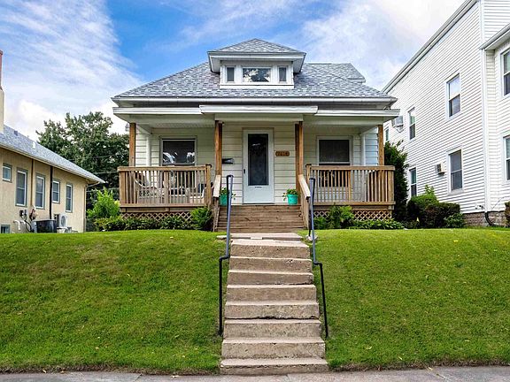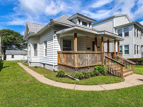 This charming two-bedroom bungalow radiates warmth and comfort, perfect for those seeking a cozy yet spacious living experience. As you approach, the bungalow you are invited in from a covered front porch perfect for relaxing. A spacious open-concept living area with high ceilings creates an airy and expansive feel. Natural light streams in through large windows, accentuating the stunning hardwood floors that run throughout the space. This home features two generously sized bedrooms with large windows, ensuring each room is bathed in natural light. The detached two-car garage provides ample space for vehicles and storage. There is so much potential in the attic space it is just waiting for your finishing touches with a room and living space already framed in. In the basement there is a large recroom, non conforming bedroom and even more storage. New paint throughout main floor!