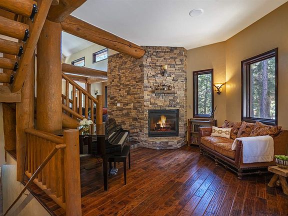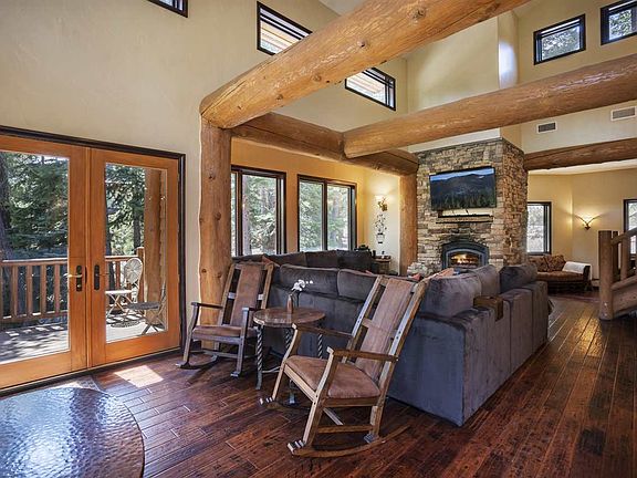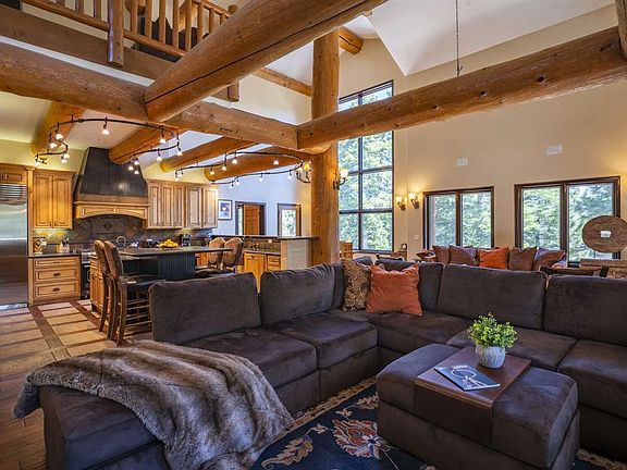 Rare opportunity to own a mountain lodge zoned for nightly rentals. This is a true mountain retreat complete with rustic log detail, rich interiors and expansive tree & Sierra Star golf course views! This property is perfect for large groups. This well designed home features an architecturally stunning great room with old growth timbers, a billiard/rec room, 6 bedrooms, 5.5 baths, gym, sauna and great floor plan that sleeps up to 20 guests! The gourmet kitchen boasts honed granite, knotty alder cabinetry, copper sinks, wine cooler and top of the line appliances. Despite its quiet setting, the lodge is around the corner from Eagle Lodge, just a short walk to the chairlifts. This is a truly unique offering; own your dream mountain retreat while capturing amazing rental revenue!