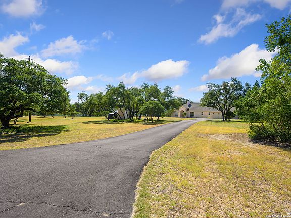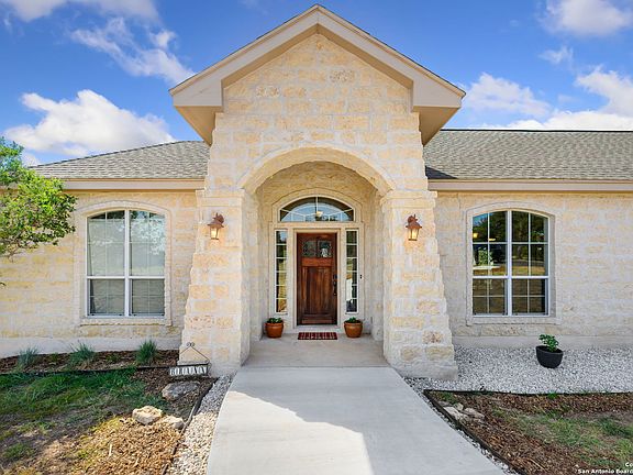 A rare opportunity presents itself in this 3 bedroom, 2.5 bath custom home in Creekwood Ranches. Situated on a quiet tree-lined street, this home is an exceptional choice for anyone looking for the beauty and serenity of hill country living. Sitting on almost 2 acres, this 2400 sq. foot property features a spacious open floor plan, stunning outdoor patio space with gorgeous bluff views, perfect to relax and unwind after a long day or enjoy your morning cup of coffee while nature watching. The living and formal dining area are spacious and open, with plenty of natural light and a great place to entertain or hang out with family. The cozy living room offers wood burning fireplace and custom wood built in. The open kitchen, which provides abundant counter and cabinet space, an island, and walk-in pantry, connects living spaces perfectly. The kitchen features gorgeous custom wood cabinets and stainless steel appliances. The master bedroom offers the perfect sitting area to admire the hill country view from inside. The master bathroom features a separate walk-in shower and tub, double sink vanity and huge walk-in closet. This home also offers an oversize garage that can easily fit 2 cars and lots of extra space for storage. This home is NOT TO BE MISSED! Come envision your new beginning.