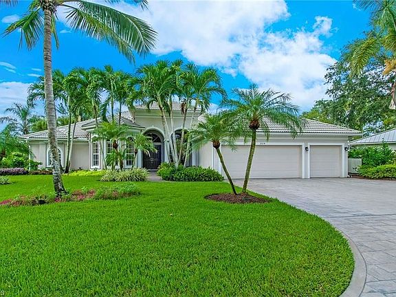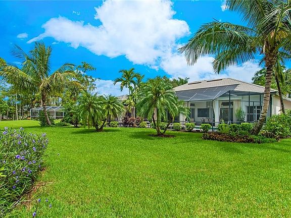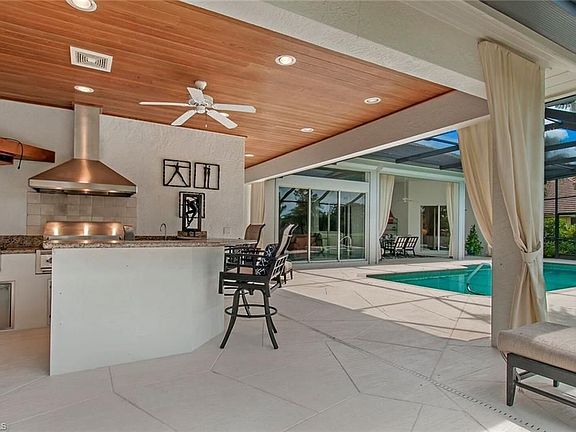 H.12191 - Stunning and spacious home with southern exposure. Casual sophistication abounds in this move in ready home. Updated designer touches through-out. Sunny pool and spa with large covered lanai area and full built in kitchen and bar. Wood ceilings over bar area. High ceilings, lots of windows, all new kitchen and beautiful wood flooring make this an exceptional value. Open floor plan is delightful. True 4 bedrooms plus a den and 3 full baths. Over-sized golf course lot has the perfect blend of double fairway views (14 & 15) and tropical foliage for privacy. This home is perfect in every way. The outdoor space is great for entertaining. There is also a 3 car garage, full hurricane shutters, 2 buried propane tanks in succession and a full house generator. Designer styling and peace of mind abound here.