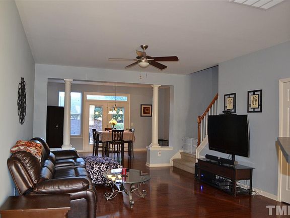 Beautiful townhouse in the desirable Martha Stewart Twin Lakes community! Great open floor plan- perfect for entertaining! Kitchen has 42 inch cherry cabinets, tile floor, refrigerator and a separate pantry. French doors with built in blinds let in the light and maintain privacy. Hardwood floors! Master bedroom with a trey ceiling and private bath. Convenient to RTP and I-540. Don't miss outdoor season with the community pool, clubhouse, playground, tennis courts and even sand volleyball! Won't last long!