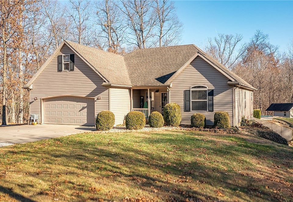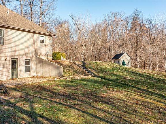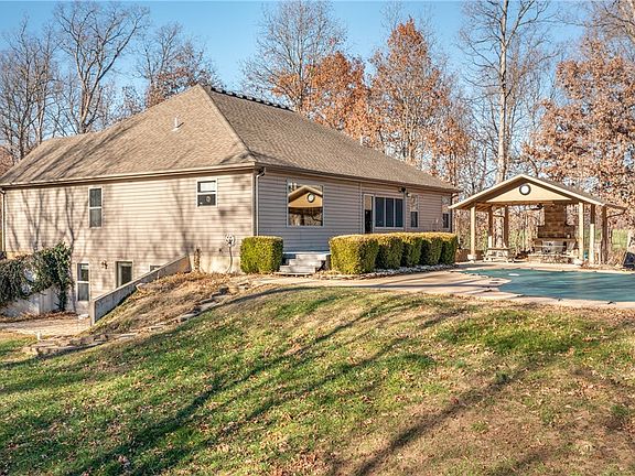 10 acres of picturesque wooded ground is the setting for this charming ranch home. Immerse yourself in the beauty of nature while enjoying modern amenities. Great room, kitchen and breakfast area with island, 2 guest bedrooms and a guest bath on one side of home with a nice private master retreat with jetted tub, walk-in shower, double bowl vanity and walk-in closet located on the opposite side. Second floor features a bonus room. The walk-out basement includes a guest bedroom, family room, play area, large laundry, bath and storage room. Enjoy the tranquility of nature from your spacious Trex type deck overlooking your own private oasis which includes a refreshing in ground pool with cover for those hot summers and a patio with an outdoor fireplace to enjoy cozy fall evenings under the stars. The property includes a 30 x 40 outbuilding with a wood stove as well as a storage shed. Home has Wabash Fiber. This property offers the perfect blend of comfort and serenity.