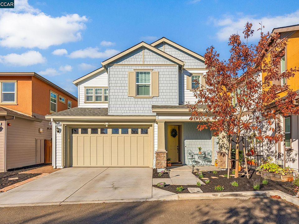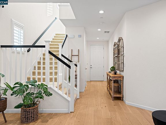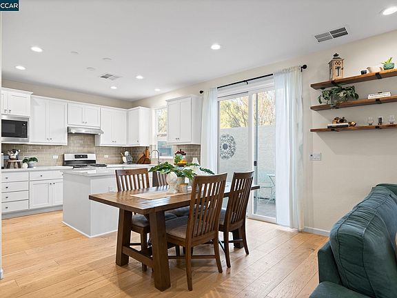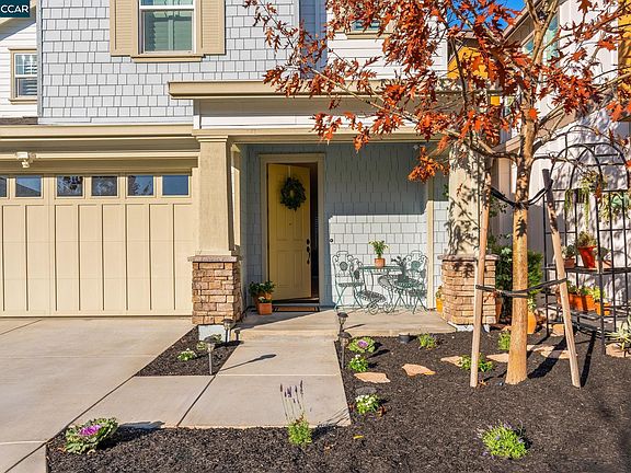 This beautiful model perfect single family 3-bedroom, 2.5-bathroom detached home is located in a highly sought-after neighborhood. Upon entry, you'll find a thoughtfully designed space blending indoor and outdoor living with modern farmhouse style. The home offers open-concept living, stylish upgrades, and abundant natural light, creating a warm and inviting atmosphere. Features include wide plank Oak floors, a spacious great room with high ceilings, and backyard access. The dining area and kitchen are perfect for entertaining, with Quartz countertops, subway tile backsplash, stainless steel appliances, white shaker cabinets, and a large island. The bedrooms are generously sized, including a wonderful primary suite with a beautifully designed bathroom featuring a dual-sink vanity, separate shower, soaking tub, and walk-in closet. Additional features include a front porch, recessed lighting, window shutters, dual pane windows, and indoor laundry. The private patio with elegant pavers and a pergola for relaxing or hosting gatherings. The home also includes a large 2-car garage with painted floors, built-in cabinets, and a tankless water heater. Enjoy nearby parks, trails, a community play area, and easy access to Downtown Livermore, shopping, dining, wineries, freeways, ACE Train.