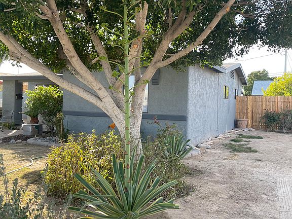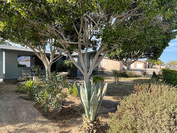 This 3 bed/ 2 bath home is the perfect home for a family that is in need of a centralized location of the city of Yuma. Schools, hospital, plazas, parks, churches, stores, and etc are all within 5 minutes! Not too close to the main roads and in a safe and friendly neighborhood. Homes in the near by area are being sold at a fast rate due to the high demand! The front yard consists of 3 trees that provide plenty of shade throughout the day and a variety of plotted and in-ground plants (15+plants). Parking drive ways on both sides of the front of the house, either side capable of travel trailer/RV with room to spare. Three fruit trees in the backyard (lemon, lime and orange) along with another tree that provides shade near the porch. Complete privacy all around the entire backyard, which includes newly built brick walls on the sides and wood fencing for the front and back. Added detached garage/partial studio in the backyard that has electricity. With a total of 7,752 sqft of the lot size, there is plenty of space for comfort and room for improvements if deemed necessary. Owner pays for water, gas and landscaping.