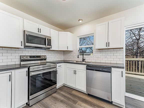 Don't miss your opportunity to own this beautifully remodeled home with a fantastic view of the Arkansas River. New electrical wiring, service and panel with arch fault breakers. New interior plumbing including drains, new A/C unit, new roof, several new windows. New, quality insulation in attic, bathroom walls and exterior walls. The interior has been completely remodeled and features a large kitchen with new cabinetry, fixtures, backsplash, laminate countertops and stainless steel appliances. New carpet in all three bedrooms with luxury vinyl plank flooring throughout the rest of the main floor. The large, unfinished basement offers tons of storage space. The exterior features fresh paint, new wooden deck and fenced backyard. The home had smoke and fire damage which has been repaired. All inspections performed as required with the City of Wichita. Gutters will be added to back of house prior to closing. Designated listing agent related to seller.