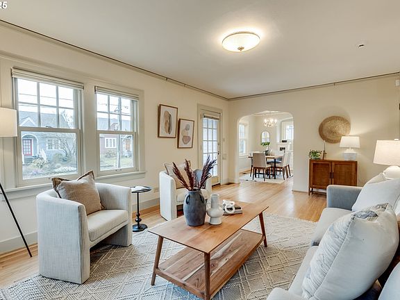 Step into this lovingly maintained 1927 home, rich with original charm and thoughtful updates. Classic details include hardwood floors, a fireplace with mantle and built-in bookcases, picture molding, and coved ceilings. The dining room boasts a built-in hutch with glass doors for added elegance and functionality. The main floor bathroom retains its vintage tiled floor and built-ins, complemented by updated plumbing and shower surround to preserve its character while ensuring modern reliability. The refreshed kitchen strikes the perfect balance between 1927 charm and contemporary convenience- quartz counters, a vent hood, built-in dishwasher, and an undermounted sink. Quality touches like Rejuvenation fixtures, a new Marmoleum floor, and Pratt & Larson tile elevate the space. The main floor offers a seamless flow between the living and dining rooms, plus 2 comfortable bedrooms and a full bath. Upstairs, you'll find a spacious bonus room, a third bedroom with ample storage, and the most adorable half-bath you’ve ever seen. The roomy basement expands your living space with a non-conforming 4th bedroom, another full bath, and a generous storage and laundry area to keep things organized. Step outside to your urban garden dream! Enjoy mature raspberries, blueberries and strawberries, along with raised GreenBed planters filled with organic soil ready for your veggies. Perennial gardens provide year-round beauty, all maintained with a convenient drip irrigation system. The covered patio is perfect for year-round BBQs and outdoor living. The oversized garage offers room for your car, tools, and garden gear. Located just 1 block from Portland's cherished 200-acre Mt. Tabor Park and close to neighborhood schools. Meticulous updates include a new sewer line, basement waterproofing, updated windows, added insulation, fresh paint inside and out, a recently cleaned roof, a new carport cover, and years of thoughtful landscaping. Welcome home! HES2 [Home Energy Score = 2. HES Report at https://rpt.greenbuildingregistry.com/hes/OR10236751]