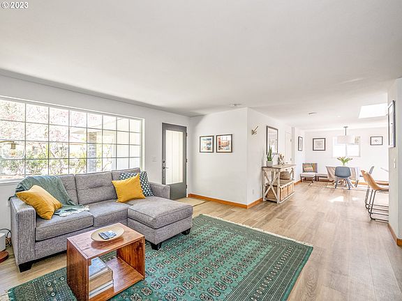 Updated Sellwood gem one block from Westmoreland Park! One-level floor plan lives large. Skylights flood the space with natural light and the living room flows beautifully into the remodeled kitchen and dining area. Spacious primary suite with slider to the backyard. New floors, paint, lighting, and quartz countertops. Solar panels are owned! Enjoy summer living on your private deck, bike rides along Springwater corridor, rides and roller skating at Oaks Park. Great restaurants, bars and coffee shops are minutes away in downtown Sellwood. Bike score 99! Don't sleep on this one; it is move-in ready! [Home Energy Score = 8. HES Report at https://rpt.greenbuildingregistry.com/hes/OR10073911]