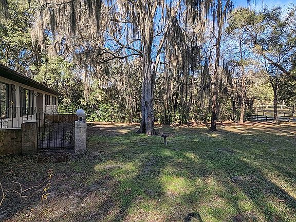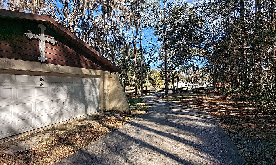 Quaint, well maintained concrete block ranch home, 3 bdrm/2 bthrm on a 2.43 acre lot with access to 122nd St (Parker Rd) and a quiet neighborhood on 120th Ter. Great living space with tile and laminate flooring, metal roof, wood-burning fireplace and ceiling fans.