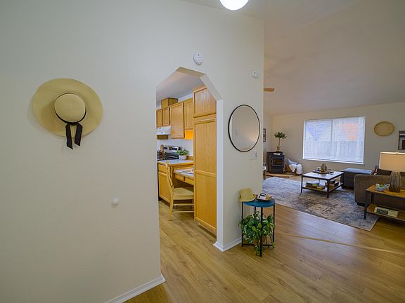 Affordable living in Redmond, Oregon. This single level home sits on a .15 acre lot with a large landscaped front and back yard located on a quiet street. Built in 1993, 1279 sf, 3 bedrooms, 2 full bathrooms, double car garage with laundry room off of the garage. Renovated in 2022 with fresh interior paint, laminate flooring, new toilets and appliances. Open, bright kitchen features oak cabinets, includes a breakfast nook and built-in desk, stainless steel refrigerator, stove and dishwasher. The dining area has sliding door access to the patio and fenced backyard for easy entertaining. Living room features vaulted ceilings, and pellet stove to keep you warm in the winter months. Primary suite looks out to the private backyard, and has two large closets plus bathroom on-suite with double vanities. Close to downtown town Redmond, restaurants, schools, shopping and Central Oregon's playground!