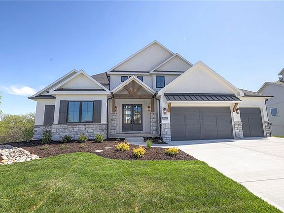 The Maplewood III by JFE Construction is stunning with a grand curved stairway opening in to a towering wall of windows showcasing the lovely greenspace. This spacious home is a 1 1/2 story that backs up to a wonderful open greenspace with an abundance of gorgeous trees creating much coveted privacy. Open kitchen with extra large island features a pantry complete with coffee bar and plenty of space for entertaining. It features a lovely stone fireplace in the great room with large windows opening to the covered deck. You will never want to leave your home! Located in Hook Farms, Hunt Midwest’s newest and fastest-growing Lee’s Summit community. 65+ acres of green space and community pool. Wooded walking trails and community garden coming soon. Lee’s Summit schools including Lee’s Summit West attendance area. Convenient location close to everything. *Taxes, room sizes & sq ft estimated*