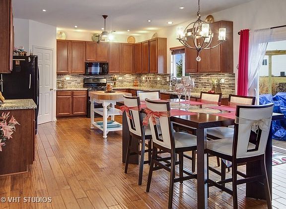 Don't miss this model home that's move in ready! set on a beautifully landscaped patch of land that is larger than other neighboring properties. This stunning 4+1 beds, 2.5 bath in Joliet IL, features luxurious upgrades and amenities. close to Plainfield schools, this two-story home was recently renovated to include gorgeous new back-splash in the kitchen,granite counter tops and eat-in- area.new hardwood floors as you enter the home and continue up the new hardwood stairs and rails.feeling warmed and welcomed as you see the beautiful accent wall in the living room that boasts an electric chimney, shelving spaces with recessed lighting. finished basement with wet bar, recess lights and wood moldings throughout the house. The exterior complimented with a breathtaking brick patio and fire pit. making it the perfect place to host friends and family, or just relax from a long day. the home can be found nestled in a fenced yard with a garden full of flowers, JUST IN TIME FOR SPRING....
