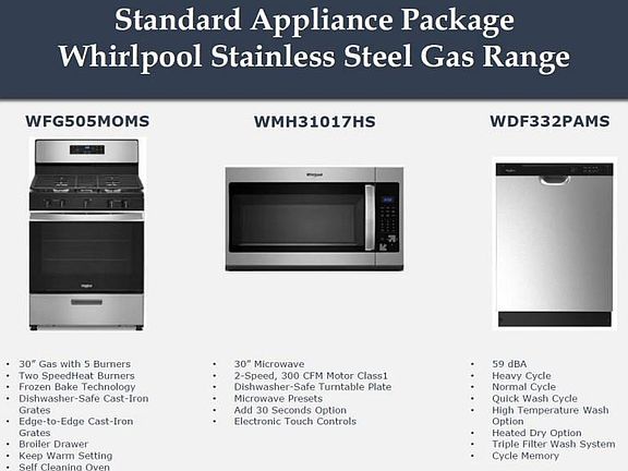 - Included: ENERGY STAR Qualified Appliances, Disposal, Electric Oven, Microwave, Gas Cooktop, Dishwasher