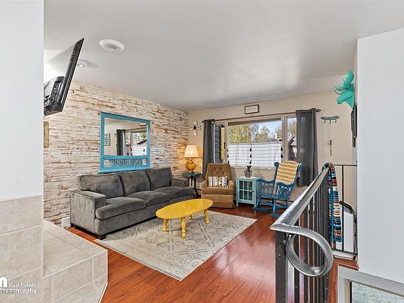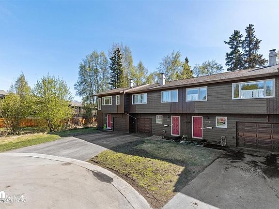 Live & Relax in this South Anchorage town home that has it all, including free RV parking, tennis courts & basketball hoop! Relax by the wood burning fireplace or enjoy the tree house like view from the upstairs bedrooms! Kitchen has custom cabinets with lots of storage, pantry & gas range. Oversize 1 car garage w/ access to a private fenced backyard that backs to a greenbelt with a creek!