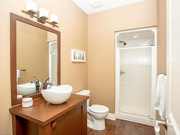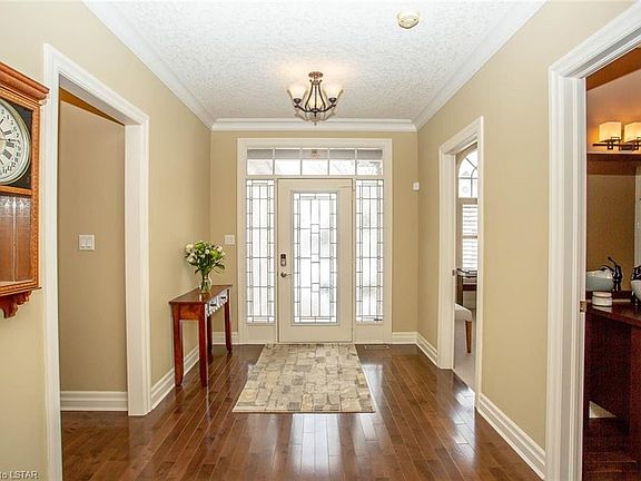 The Enclave at Sunningdale is North London's most prestigious gated community. This freehold condo is nestled in a very quiet area amongst mature trees and trails. This elegant open concept home boasts 2+2 bedrooms, 3 full bathrooms, and many upgrades. The open concept design features 10 foot ceilings, large windows, California shutters, hardwood flooring, 2 gas fireplaces and crown moulding. Granite counter tops in the kitchen, new induction stove and fridge (2020), and lots of cupboard space makes this kitchen inviting and a chef's dream. Master bedroom is large, has 2 walk in closets and a luxury ensuite with a soaker tub, separate shower and double sinks. Second bedroom could also be used as an office or den, has a Palladium window and a 3 piece bathroom. Lower level has a large family room, 2 more bedrooms and a full bathroom (located between them), plus a very large storage area. An oversized double car garage, beautiful landscaping and upscale quality makes this home very unique in London.