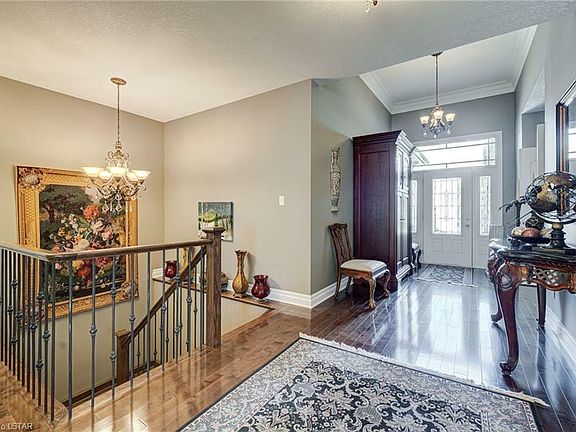Welcome to the most exclusive gated community in North London, The Enclave. This prestigious homes features an open floor plan on both levels, with close to 4000 sqft of finished space. The main floor boasts a large Primary bedroom and ensuite away from living and dining for added privacy. Large dining room area open to the Living room complete with gas fireplace and large windows. Bright and white kitchen with hard surfaces throughout. Breakfast nook overlooks the backyard and deck area with great entertaining spaces. Den off the kitchen could also be an extra bedroom beside the powder room with walk-in shower for convenience. Downstairs you'll find a large rec room with library shelving, wet bar, two bedrooms and a large home office. Beautifully appointed bathroom with large walk-in shower and soaker tub. The perfect oasis for quests and family. This meticulously maintained home is ready for it's new owners. Close to walking trails, shopping, schools and restaurants/gyms, this private neighborhood is in the midst of it all while having private peace and quiet.