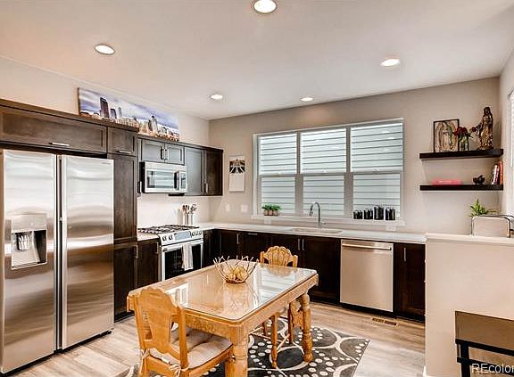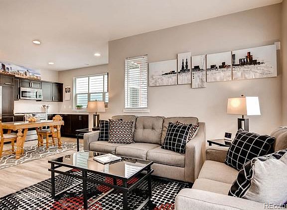 Contemporary meets charm in this practically new home still under full warranty! Open floor plan w/ gorgeous 'wood' laminate on main. Kitchen w/ quartz counter tops, upgraded cabinets w/ brushed metal hardware. Central vacuum throughout. Tranquil master w/ dual closets. En suite master bath features pocket door and double vanity. Sunlit vaulted ceiling w/ mountain views! Solar shingles (owned, not leased) and tank-less water heater for maximum energy efficiency. Wired for internet w/ Cat5E. 10 YEAR STRUCTURAL WARRANTY AND 30 YEAR TRANSFERABLE ROOF WARRANTY. Clubhouse available for parties, community garden, dog park, park w/ playground. Great wrap around porch to relax and just steps away from bike/running path. Walk to RTD, brewery and coffee shop. Just 10 minutes from Downtown Denver. This incredible home includes a finished basement and is priced less than current options from builder plus you can move in now!