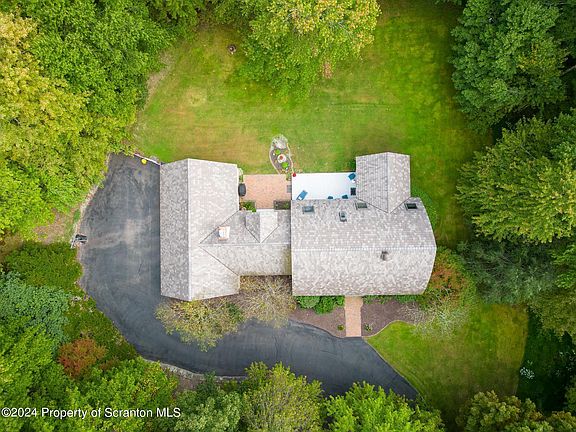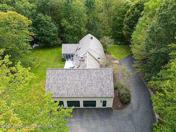 Welcome to this charming New England Bow Cape Cod, a timeless blend of classic design and modern amenities. Nestled on 3.9 acres, this captivating home boasts 4 spacious bedrooms, 3 bathrooms, and an expansive 3-car garage. With 3,900 sq. ft. of living space, this property offers comfort, functionality, and plenty of room to grow. Step inside to find wide plank pine hardwood floors that exude warmth and character throughout the home. Two fireplaces provide cozy spots to gather--perfect for relaxing on cool evenings. A dedicated study with custom built-in bookcases creates an ideal space for reading or working from home. The heart of the home is the bright and open kitchen, fully equipped with modern appliances, dual ovens, a pantry, and ample cabinet space. Adjacent is a welcoming dining room offering the perfect space for entertaining family and friends. A finished basement provides additional versatile living space, ideal for a media room, gym, or game room. There's also an unfinished bonus room above the garage, offering great potential to customize the space to suit your needs. Outside, the screened-in patio offers a peaceful retreat, where you can enjoy quiet mornings or evenings, overlooking the serene landscape. The 3.9-acre setting includes a picturesque pond--ideal for fishing, paddle boarding, or simply enjoying nature. Though this home is set in a tranquil and private location, it's just a short drive to Clarks Summit, offering the convenience of nearby shops, restaurants, and amenities. This unique property delivers the perfect balance of peaceful country living with modern conveniences. Don't miss this rare opportunity to make this exceptional home your forever retreat!