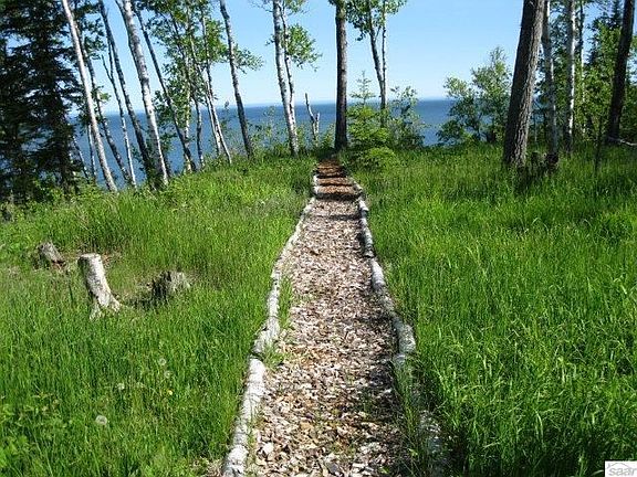 Cozy log cabin set upon 500 feet of Lake Superior frontage with all the trimmings. Beautiful wood burning stone fireplace with insert that cranks out the heat, in floor heat system, Large loft space for bedroom or family room, nice hardwoods floors, New Kitchen and Bath, heated outhouse w/ separate storage area. Barn wood from the 1850's in the cabin (Cannon Falls, MN) Panoramic breath taking views of Lake Superior, Bark Pt, Corny's Thunder bay and up the North Shore horizon! Solar added, as well as Split Unit Heat/AC. New Septic and Well 2018. Garage with living space finished above. Two lots put together for large frontage access. Stairs to own beach need aid after 25 ft waves in 2017.