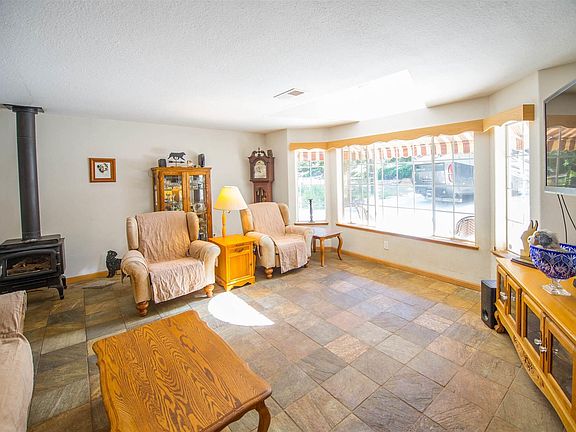 1+ Acre of beautiful, mostly flat, usable land. Plenty of property for your RV and other recreational toys. There is a 220 RV hookup and sewer connection with additional 110 RV hookup. Garage is wired with 220 so that you can use it for your projects and crafts. The kitchen has been totally redone solid granite counter tops with soft close drawers, large pull out drawers for your pots and pans and a one of a kind pull out lazy susan. Top of the line stainless steel appliances and an original designed back splash. Office was wired especially for multiple computers and printers. 17 x 32 covered patio, can lights illuminate your evening parties. Piped in propane for your BBQ so you never run out. Hot and cold water piped to deck for potting shed or dog bathing. Gutter guards on all gutters. Master Cool Evaporative Cooler (not swamp cooler). Window sills are Formica so no staining. Garden window in kitchen, tankless water heater, full slate floors with custom oak baseboards. Washer and Dryer to stay. Granite counter tops in the bathrooms with custom oak cabinets. The list goes on and on. Come and see, Come and stay.