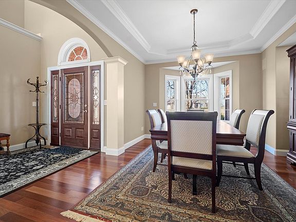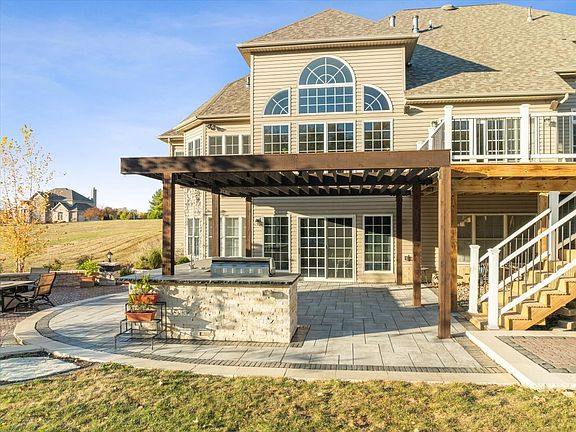 Nestled on a private 1.48-acre lot, this expansive open-concept home offers unmatched tranquility with no backyard neighbors, surrounded by a lush, wooded area teeming with wildlife. It's the perfect retreat for nature lovers, offering both peaceful solitude and an ideal setting for entertaining in harmony with nature. Upon entering, you're greeted by soaring ceilings and stunning hardwood floors that set the tone for the home's warm and inviting atmosphere. The main level features impressive floor-to-ceiling windows, offering panoramic views of the serene woodland surrounding the property. These large windows flood the home with natural light, creating a bright and airy ambiance while providing a continuous connection to the outdoors. The luxurious master suite is located on the main floor, designed for ultimate relaxation. A cozy sitting area, bathed in natural light from additional windows, provides the perfect space to unwind while enjoying the peaceful forest views. The master bedroom also boasts a spacious walk-in closet and a spa-like en-suite bathroom with crown molding, dual vanities, a jetted tub, and a separate glass-tiled shower. The chef's kitchen combines both function and style, with sleek granite countertops, wood cabinetry, and high-end stainless steel appliances. It's ideal for cooking and entertaining, with a breakfast nook offering stunning views of the wooded surroundings. Whether preparing a gourmet meal or enjoying a casual breakfast, this kitchen is a beautiful and practical space. Upstairs, there are three bedrooms, each thoughtfully designed with built-in desks for additional workspace. These rooms are versatile, perfect for bedrooms, a home office, or a guest suite. The second floor also includes a full bathroom for added convenience. The fully finished basement offers multiple entertainment options. A dedicated theater room with custom curtains, plush leather seating, and Dolby Atmos surround sound creates an immersive cinematic experience. Additionally, the basement features a pool table, providing a great spot for family fun or entertaining guests. The basement also includes an additional bedroom and a full bathroom, making it perfect for guests or extended family. The basement walks out to an expansive brick Unilock patio, leading to a custom-designed outdoor living space that's perfect for entertaining year-round. This space includes a top-of-the-line smoker, a full bar, an entertainment area, and a cozy fireplace. Whether hosting a BBQ or enjoying a fire in the cooler months, this outdoor area enhances the home's appeal. Additional features include energy-efficient geothermal heating and cooling, a 16x19 Trex deck, a central vacuum system, and a spacious three-car side-load garage. The home has been freshly painted and is move-in ready. Though offering complete privacy, this property is conveniently located just minutes from Tri-Valley-a top-rated school district, as well as local shopping, dining, and businesses. The combination of peaceful seclusion and easy access to amenities makes this an ideal location for those seeking the best of both worlds. This home seamlessly blends luxury, functionality, and privacy. With its expansive open floor plan, premium amenities, and stunning natural surroundings, it's the perfect space for modern living in a tranquil, nature-filled setting. Don't miss the opportunity to make this exceptional property your own.