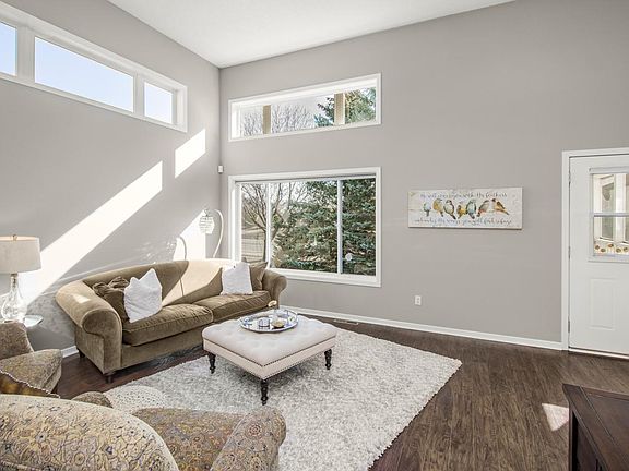 Meticulously maintained and beautifully presented END unit townhome in wonderful location! Large, naturally lit entry foyer with garage access. Soaring vaulted ceilings and tons of natural light. Delightful screened-in porch. Pergo laminate floors throughout main floor. Kitchen has all stainless steel appliances and lots of storage. Two bedrooms upstairs with two updated baths! Primary bedroom has a large walk in closet and private 3/4 bath; Second bedroom is amply sized and is adjacent to the full bathroom on this level. Lower level offers a half bath, large family room/flex/office space with large lookout windows. Nearly new (2023) Furnace, A/C and water heater! Easy walk to downtown Lakeville and Aronson Park. Antler Park/beach/Lake Marion are less than 2 miles. Nestled between Hwy 35 and Cedar you have easy access to all the shopping and conveniences you could need!