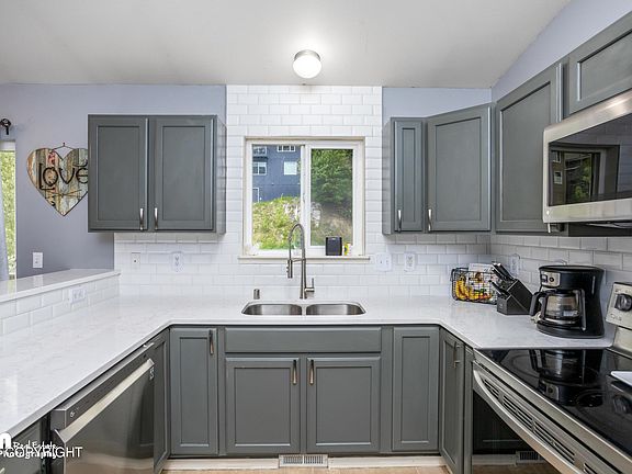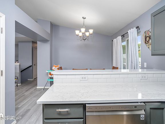 Open House Sat 1-3 Enjoy mountain views from your living room! This home has a great layout, and brand newer flooring! Updated kitchen featuring quartz counter tops. 4 BR (2 up, 2 down), 2 BA, separate family rm & laundry rm, stainless appli, pantry, balcony, gas firepl, vaulted ceiling, large deck off family room, fenced. This home is move-in ready and a ''must see''in Eagle River neighborhd