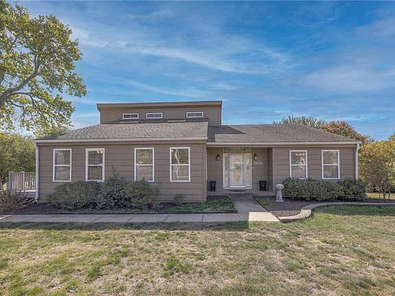 RARE opportunity! Peace and tranquility overlooking water on 1.2 acres in Olathe! NEW Furnace and NEW AC! Great room with fireplace and grand 2 story ceiling! Kitchen boasts huge quartz island, pantry, stainless steel appliances and overlooks the dining room! Primary suite with sitting room and fireplace walks into primary bath with jetted but overlooking the fireplace, 2 vanities, built-ins and walk-in closet! Spend time relaxing in the sunroom with peaceful water views! Spend weekends grilling on your covered patio and paddleboarding just steps from your backyard! Award winning Olathe Schools! Welcome Home! Taxes and SqFt per county record. Room sizes approx. No preferences or limitations or discrimination because of any of the protected classes under Fair Housing.