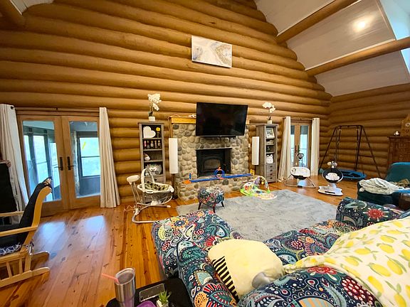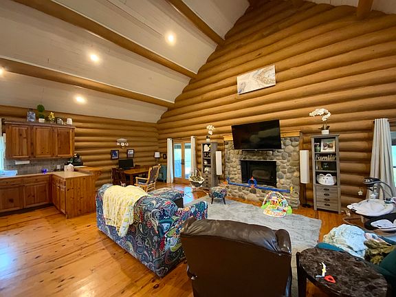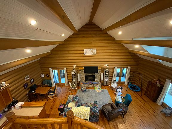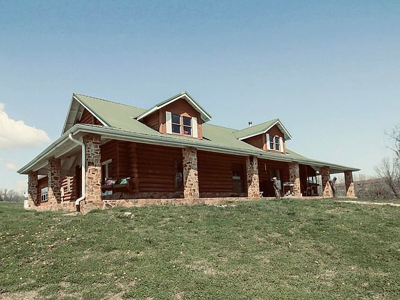 APPOINTMENT REQUIRED! Stunning! Unique! Secluded! Ready for a buyer to make their own!This rustic log home sits on approximately 10 acres surrounded by beautiful views of rolling hills on all sides! Get ready for 100 feet of wrap-around covered porch to enjoy those views!The inside of this home continues in the log cabin theme with beautiful rustic wood flooring throughout, log banisters up to a beautiful lofted area overlooking the great room and the original stone fireplace! This home could be a stunner with just a little TLC! Zoned heat and air, tons of storage and bonus spaces, generous master bedroom on the main level with an enormous en suite, complete with his & her sinks, soaking tub, walk-in shower, and fireplace! Find everything you need on the main level, with two bedrooms and two bathrooms upstairs!You don't want to miss this incredible opportunity to own this unique property and a little slice of heaven in the hillside! This could be a showcase home, needs some repair outside, selling AS IS only and that is reflected in the price. Call today.
