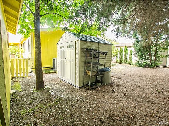 Prime location in the desirable 55+ community of Parkway Village near Fairhaven. This home is near the back of the park backing to greenbelt, so a very quiet & peaceful setting you will love! Covered parking, 2 storage sheds plus a shop for the hobby work & a private deck to enjoy. Near the interurban trail system & 20 minutes or less walk to Arroyo or Fairhaven Park. Home upgrades include energy efficient on-demand hot water & heat pump w/ A/C. Open floor plan w/vaulted ceilings. Don't miss it!