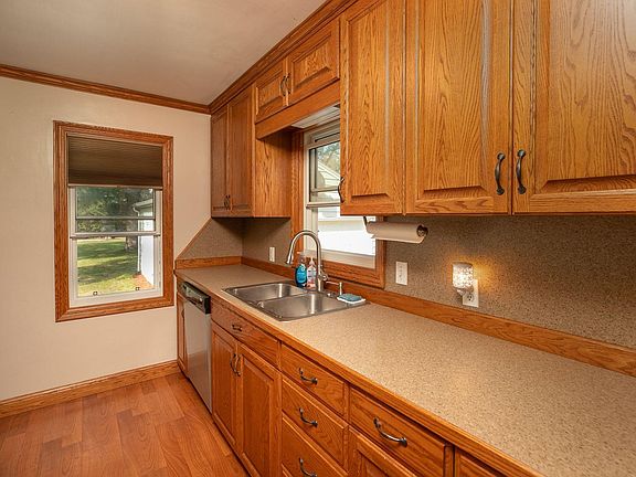 This home is dripping in custom upgrades from the newer oak kitchen, recently remodeled master bedroom and the upgraded bathroom. The house also features new custom oak millwork throughout. The home also features newer replacement vinyl windows, massive backyard, 2-stall garage and a ton of potential in the basement.