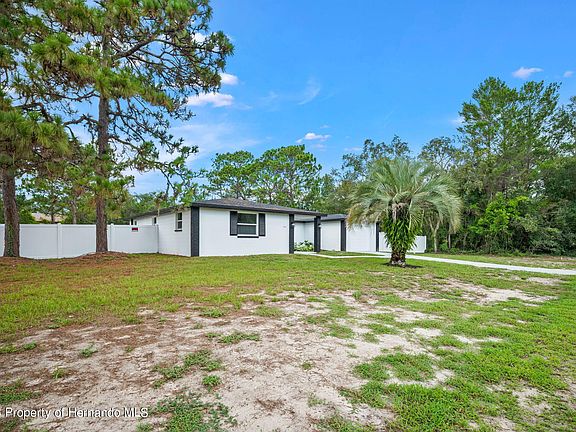 This beautiful newly updated 3/2 with bonus room/office & separate private entry mother-in-law suite w/kitchenette and full bath is definitely a hidden gem in Spring Hill! A complete remodel & expansion with no expense spared. Peace of mind is the name of the game with this home..NEW roof 6/23, NEW insulated windows throughout 6/23, new hot water heater and AC unit within the last year. Customizations galore! Luxury vinyl throughout, marble floors & porcelain shower tiles in all bathrooms. Large spacious open floor plan, modern kitchen boasts a quartz waterfall island w/tons of storage, porcelain backsplash, 42'' shaker cabinets; all new appliances. A farmhouse-style barn door leads the way into your bonus room/office with new glass French doors that boast peaceful views of your huge private yard space. You'll find a separate keyed entrance into a studio suite/(MIL quarters) area cooled by a mini split ac unit.