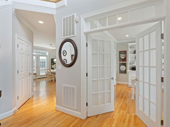 Exceptional offering in Still Meadow! Situated on a slightly elevated lot, this immaculate quality-built home sits on almost 1/2 acre surrounded by professionally designed landscape and custom hardscape. Freshly painted both inside and out. 2024 new upper level HVAC. Quality craftsmanship, custom finishes, solid shelving and attention to detail. Step inside from a cover front porch to a light-filled foyer. Glass French doors open to home office with built-ins. Living and dining room flow into one great space. Family room with gas fireplace and vaulted ceiling opens to gourmet eat-in kitchen equipped with top of the line appliances, dual-fuel gas range, lighted walk-in pantry and stone counters. Dine alfresco on the back deck where privacy abounds - a true oasis! Primary en suite with tray ceiling, luxury bath and custom-organized walk-in closet. Convenient upper level laundry room. Three bedrooms and a full hall bath complete the upper level. Walkout terrace level rec room with room for a home gym, entertaining and play complete with full bath and ample storage. All baths with granite counters. Crown molding galore. Custom built-ins. 2-car side-load garage.
