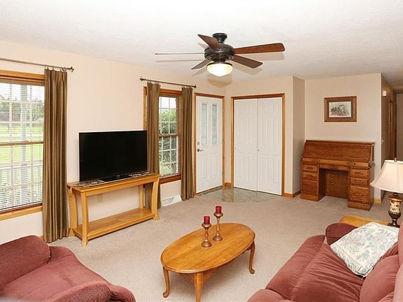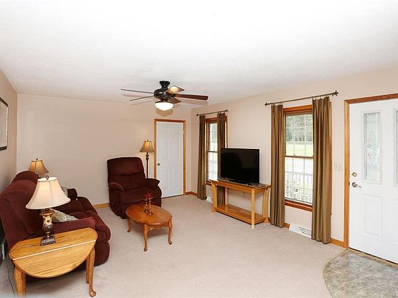 This beautiful ranch sits on almost 2 acres of land with an attached 2 car garage and lovely front porch. The accessible property features an entry level bedroom and no step laundry and shower. Utilities include central air, emergency backup generator, water softener and a central vacuum system. The home also has an eat-in kitchen with corian countertops, breakfast bar and a sliding glass door that opens to a rear patio with an amazing view!