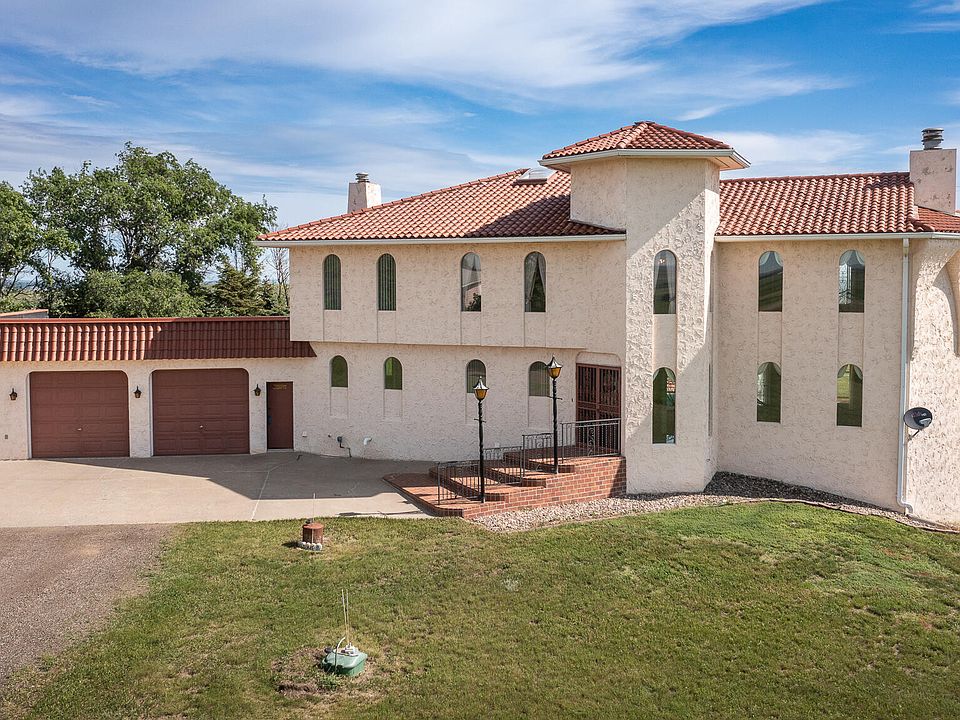Take a look at this ''One of a Kind'' 2 Story Home w/ 7 acres located approx 5 miles South of Mandan. Perched on top of a hill w/ panoramic views of rolling hills, The Missouri river, Fort Lincoln and more. If you've looking for a unique home w/ character this one has it. Detached garage w/ 864 sq ft. 3 fireplaces , sunroom, walk out lower level and more.. 2 propane tanks one is rented from Rudd Oil and the underground tank is owned.