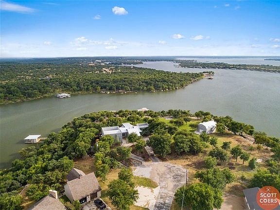 Stunning recently updated water front home that boasts one of Lake Brownwood's most unique and desirable lots. This property has approx. 957' of water front offering deep water and gorgeous shore line. There are two boat docks. The new dock has composite flooring, swim plat form, boat and jet ski lifts with diving platform. The home sits on 4 acres of manicured landscaping and has a large wooden deck and sitting areas. The interior is open concept with many windows to enjoy the views of the lake and beautiful landscaping. The kitchen is a delight with its eating bar and spacious open feel while enjoying the outdoor views. The bedrooms are oversized and have plenty of storage. Workshop with living quarters.