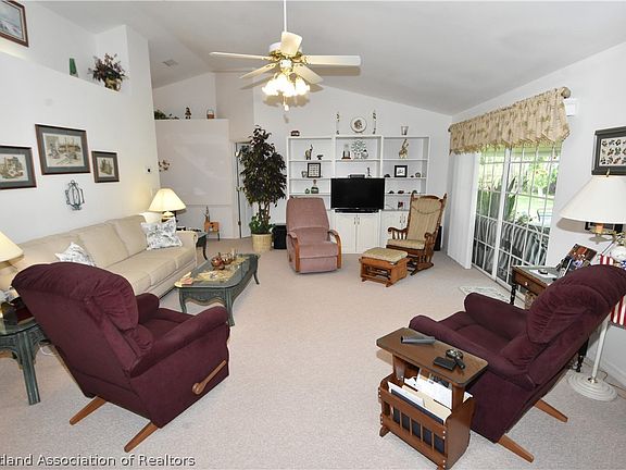 Welcome home to this nicely maintained 3 Bedroom, 2.5 Bath home w/ 2 car garage situated on .41 of an acre in Golf Hammock. This home offers an open floor plan with cathedral ceilings throughout, berber carpeting in the bedrooms, living & dining room, hurricane shutters, whole house generator, shed & is also being sold partially furnished. You are going to enjoy the the layout of this home as there is plenty of room to spread out and entertain while cooking in the kitchen. The dining room has several windows and keeps this room very light & bright. The kitchen has white cabinets w/ white appliances & plenty of cabinet & counter space w/ long breakfast bar for added seating. The primary bedroom includes white built-in storage w/ drawers, windows facing to the rear for light, double closets & ensuite bath w/ double sink vanity & tile shower. Both guest bedrooms have ample amount of closet space and are easily assessable to the guest bath & 1/2 bath. All of the bathrooms have newer flooring & raised toilets. The rear screened porch is directly off of the living room and is the perfect place for sitting and enjoying those beautiful Florida sunsets. This home is being sold mostly furnished & includes hurricane shutters & 22 kw Generac whole house generator for added protection. The roof was replaced in 11/2020 & the a/c was just replaced 3/2024. You are within golf cart distance to the clubhouse, golf course and a short distance to the Hammock Rd bicycle path to Highlands Hammock State Park or to the YMCA. Come and see why this community is so desirable to live it! Priced right!