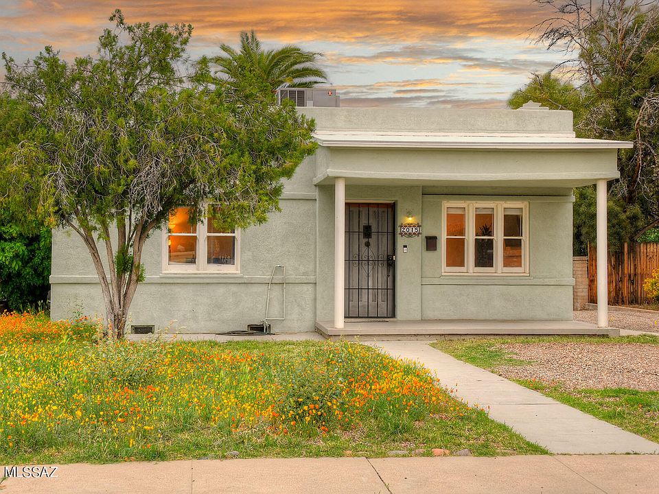Sam Hughes 1938 bungalow sweetly renovated 2 bedroom, 1 bathroom main home is 1206 square ft. Restored original hardwood floors, newer kitchen, shaker cabinetry, subway tile, quartz counter tops, SS appliances. Recessed lighting, remodeled bathroom, new shower, new vanities, newer plumbing fixtures. Laundry room. 55 feet of sewer line replaced. Upgraded guest house with new kitchen, countertops, subway tile, dishwasher, Fridge. Remodeled Walk-in shower, bathroom, colored concrete floors, stackable laundry. 6' Wrought iron fence around guest home and west side of the pool. Pebble Tec pool installed 2014. Newer HVAC systems. Hardwood floors, Deco ceilings, built ins. Walled and private back yard alley access. Tons of off street parking & carport.