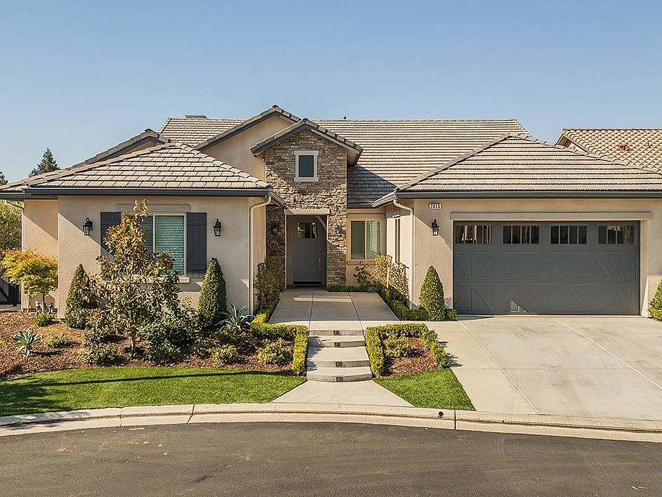 Spectacular Gary McDonald home in gated the community of Vista Del Campo. The home is 3 BR and 2 of the bedrooms have ensuites, plus a 3rd BR for guests. The 3rd BR has double doors, slider to back yard and easy access to the hall BR. There is a spacious eating area off the kitchen, and a bonus room that can be used as a formal dining area or office. Exquisite details throughout; coffered ceilings, crown molding, automatic blinds, new paint, KitchenAid appliances, quartz counter tops, double ovens, water filtration system; exceptional storage, extra cabinetry in the laundry, custom cabinets in the garage. The oversized lot boasts a sprawling pool w/waterfall, elevated spa, sun deck, & Pebble Tec finish. Huge extended patio wraps around the house with TWO covered areas, fire pit, & putting green. There's even grass for your dogs! It's true indoor-outdoor living that doubles your square footage for entertaining. Tankless water heater owned solar and more! Tandem 3-car garage with expanded driveway. Plus, the most sought-after schools: Fugman, Granite Ridge, & Clovis North.