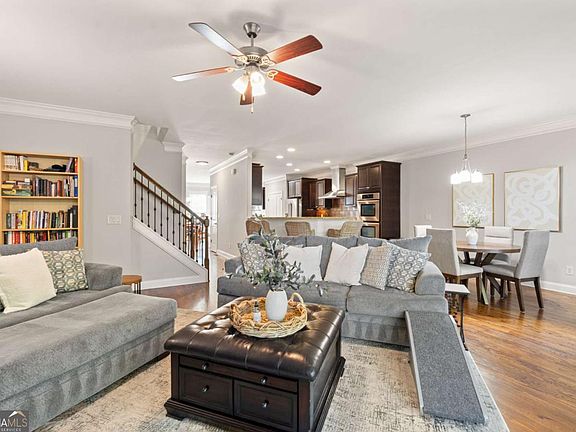 A rare opportunity awaits in the sought-after Newhaven Walk community-just minutes from downtown Roswell's vibrant shops, dining, and parks. This spacious townhome blends comfort, convenience, and timeless design across three beautifully finished levels. Upon entering, you'll be greeted by an inviting mix of flexibility and function, with hardwoods across the main and lower levels and upgraded carpet upstairs. The open-concept main floor is anchored by a large, gourmet kitchen featuring double ovens, a 36" gas cooktop, stainless vent hood, breakfast bar, and views to the family room. The layout also includes a separate dining room and casual breakfast area, perfect for both weeknight dinners and weekend gatherings. Tucked just off the kitchen, you'll find a quiet study nook that makes working from home a breeze. The sunny breakfast area and family room open to the rear deck - a great spot for morning coffee or dining under the stars. Upstairs, two oversized bedrooms each feature private baths with double vanities and walk-in showers. The primary suite also includes a jetted tub, tray ceiling, and generous walk-in closet. Laundry is conveniently located on the upper level. On the terrace level, an additional living room, third bedroom, and full bath provide flexible options-ideal for a guest suite, home office, gym, or media space. A lower patio offers yet another inviting spot to relax and enjoy the outdoors. Additional highlights include an elevator shaft currently used for storage, custom closet systems, garage shelving for extra organization, and a new roof. Just minutes from downtown Roswell, Crabapple/downtown Milton, downtown Alpharetta and Avalon - you'll love the prime location. Enjoy easy access to top restaurants, boutique shopping, community events, and major highways all within reach.