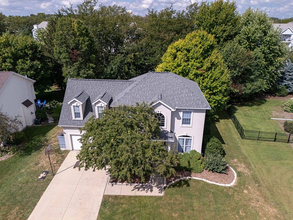 One of a kind, custom built home in Ironwood Country Club Neighborhood. This beautifully crafted home offers timeless style, and modern comfort featuring hardwood floors, and soaring 9 foot ceilings throughout the main level. The inviting Eat in kitchen boasts granite countertops, a snack/breakfast bar, pantry space, a separate coffee bar with butcher block, tiled backsplash and stainless steel appliances that remain. A separate dining area and versatile first floor office flex room with french doors complement the stunning two-story foyer. The spacious family room showcases a cozy gas fireplace with a tile surround and leads to the private fenced backyard complete with a patio, mature trees, lush landscaping, a pergola for entertaining w/ gas grill and a fire pit for evening enjoyment. Upstairs you'll find generously sized bedrooms with organized closets, including an extra large guestroom and a luxurious primary suite with a walk-in closet with built-in organizers, double sinks a separate soaking tub and a soaring cathedral ceiling. The finished lower level is designed for family fun offering a theater room a kitchenette and a large family room space. Additional updates includes fresh interior paint, newer carpet upstairs and a new roof in 2016. Bring your family home to this exceptional Ironwood Country Club residence today!