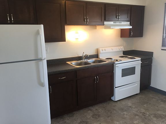 Brick one story bldgNewer carpetEat in kitchenLaundry room in bldgFront and back doorsGood size unitStove and refrigerator