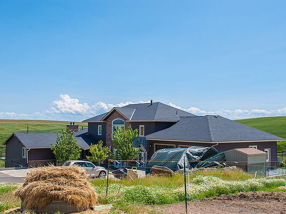 INCREDIBLE OFFER! 7 acres surrounded by the gorgeous Camas Prairie, nature & panoramic views of rolling grass hills & crop fields. 6BD/5BA luxury two-story house w/ lower level living areas. 4 BD suites; gourmet chefâs kitchen; slab granite, tile & sleek flooring thru-out. Extensive paver patios, tiered walls, composite decks, view balconies, covered patios & gates; fire pit. Insulated 80âx40â shop w/4 oversized garage doors. Horse pasture/corrals, cement dog run. RV, BIG RIG parking. Bring animals/pets.