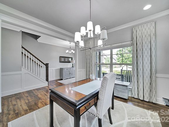 Beautiful 5BR/4BA former model home in the sought-after Glendalough neighborhood of Indian Trail, set on a spacious ¼-acre lot. This well-maintained three-story home features LVP flooring on the main level, upgraded carpet upstairs, and a chef’s kitchen with granite countertops, extended cabinetry, built-in buffet with drink fridge, tiled kitchen bar area, and crown molding. The open layout connects the kitchen, family room, and sunroom for seamless entertaining. The primary suite includes an upgraded walk-in closet and a tiled en-suite bath. All bathrooms and the laundry room are tiled. The 3-car garage offers a raised storage platform, added cabinets, and an extra-deep bay for large vehicles. Enjoy the paver fire pit in the backyard, extended driveway, and concrete pad for garbage can storage. Neighborhood amenities include clubhouse, pool, playground, and pond. Curtains, blinds, rugs, and loft chairs stay. High-end upgrades throughout. Easy access to the bypass!