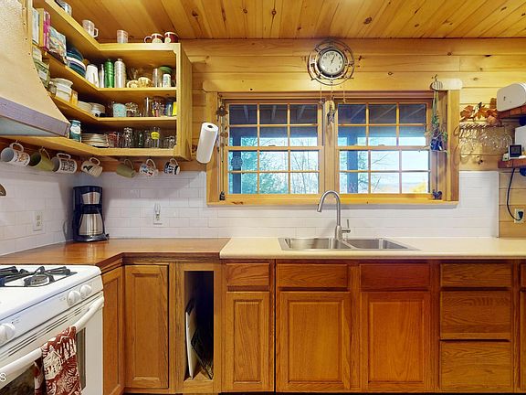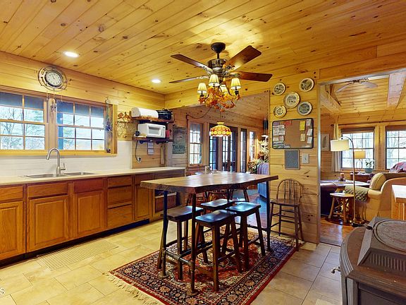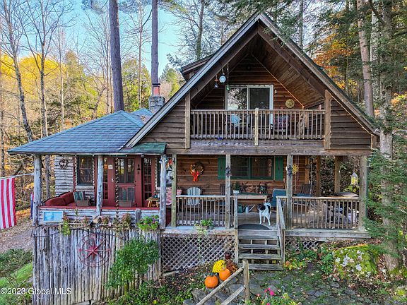 Welcome to Blair's Bay! Step into this cottage by Lake George and let your stress melt away. Offering a large living room with stone fireplace which is open to the eat-in kitchen. Main floor includes a full bath, one bedroom and an office/bonus room. Upstairs includes another bedroom, full bath and primary bedroom with its own covered porch to listen to the babbling of Sucker Brook. This home has deeded lake access across the road for swimming/kayaking and includes half of a 60' dock for your boat. There is a deeded right of way and parking for a golf cart, which is included in the sale. Home comes furnished. Large, covered front porch to enjoy the views. Nicely landscaped! Easy access to hiking. New mini split system just installed. New mini split system being installed Nov. 7th, underside of original home has been spray foamed. Owner is currently a member of the house association but it isn't required for new owner. New owner may also join the Glenburnie association for access to 5 hole golf course and tennis courts.