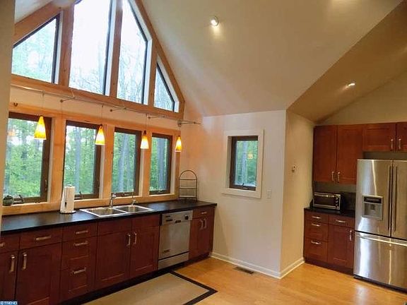 **APPROVED SHORT-SALE!! Wonderful A-frame Contemporary located in Milford Township. This home features an abundance of living space and has many unique features. The main floor boasts a large, open area set up as a large living room with adjacent dining area. This floor also features an open, custom kitchen complete with a walk-in pantry. This floor also has front and rear access to two of the home's deck areas, each of which overlook separate fish ponds. The main level also has a powder room, spiral staircase leading to an open loft that can be used as a 4th bedroom or bonus area with a walk out balcony. The Master Bedroom is just a few steps down from the main floor. The Master suite is complete with a spacious master bathroom with jetted tub and a separate tiled shower as well as a sitting area and walk-in closet. Continue down the stairway and you will find yourself in the large family room with access to the enclosed patio. Also on the lower level, you will find two additional bedrooms, one full bathroom, laundry room, utility room as well as a small office. One more level down you will find the basement for additional storage and/or workroom. This is truly a one of a kind home as it was completely redone and added on to by the current owner. Built to compliment its setting as well as to capture the surrounding beauty. The living room boasts a wall of windows to bring in the natural light. HVAC unit also has 3 zones to optimize efficiency. Off the beaten path and situated on over 2 acres yet convenieent to shopping and major routes. Potential Short Sale: Buyer responsible for fee to Short Sale Processors in the amnt of 1% of purchase price or $1,500 whichever is greater.