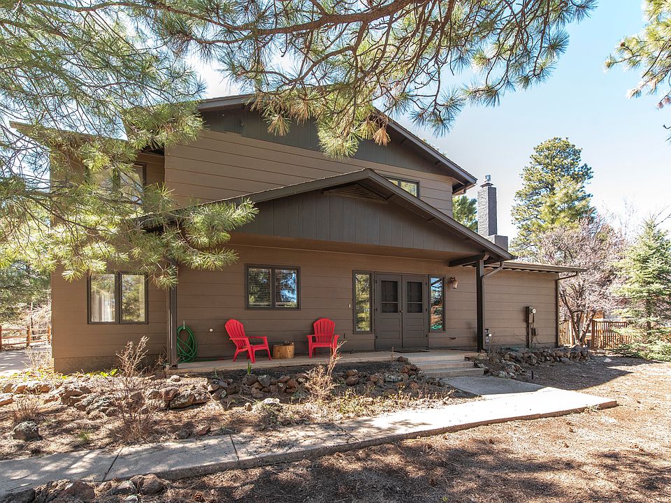 Beautiful country club home on a ponderosa pine covered lot nestled in a quiet cul de sac.Offering 2710 Sq. ft. on a quarter acre lot. Boasting 3 large master suites/Spacious vaulted ceiling living room w/ a gas fireplace to meet your entertainment needs. Cozy southern facing room off kitchen will provide an array of multi-use options. Laundry room with double sink and ample storage.After a long day of work or play come home and enjoy relaxing on your comfortable outdoor trex deck and enjoy the quiet mountain air surrounded by easy maintenance landscaping including beautiful ponderosa pines and a variety of fruit trees. This can be a wonderful primary home or a perfect lock and leave second home. All furniture for sale outside of escrow on separate bill of sale.