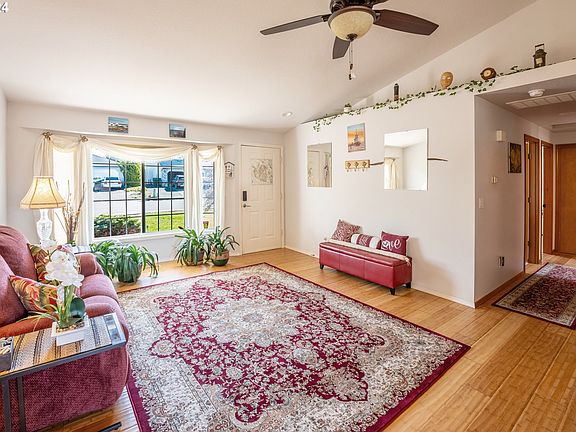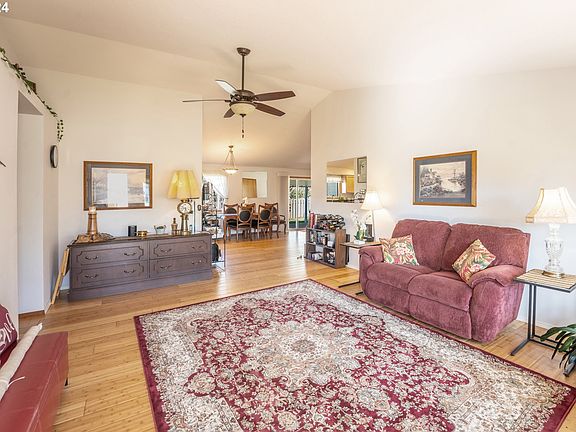 OPEN HOUSE CANCELLED!!All one-level living with Everything on your checklist: Bamboo floors, vaulted ceilings, gas fireplace, central air, full primary suite and open floor plan. Go ahead and bring the Big table -- the dining/living/family room combination is spacious enough for extended family gatherings. The kitchen is equipped with a pantry and granite countertops. At the far end of the house is the primary suite with sitting area, walk-in/roll-in closet, jet tub, curb-free custom-tile shower, heated tile floors and skylight. Outside, laugh at the rain as you barbecue all year around on your large covered patio. Potential RV/toy parking.