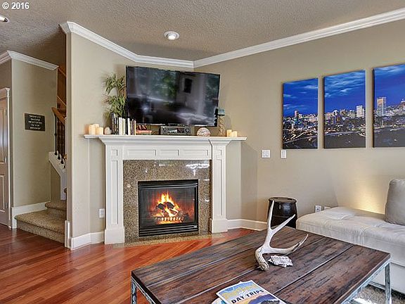Immaculate 3-level, end unit in Forest Heights Crossing, steps to Forest Hts Village Ctr. Home backs to greenspace -enjoy views and a fireplace on every floor! Cherry flrs and Bose hardwired sound system on main. Granite counters, lrg island in kitchen. Mster w/ 2-sided fireplace, tub/shower & walk-in closet. 2nd bedroom has full bath. Finished bonus on lower lvl w/ patio, bar area w/ sink and storage. Hunter Douglas blinds throughout.