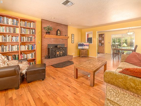 Beautiful light and bright home with hardwood floors. Features vinyl windows, large indoor utility room with built-ins, large galley kitchen open to the dining area, wood stove insert with brick hearth & surround, covered patio, metal roof, heat pump, 2 hot water heaters. Large backyard with tool shed, perfect for gardening. Close to shopping, schools and bus line. A must see!